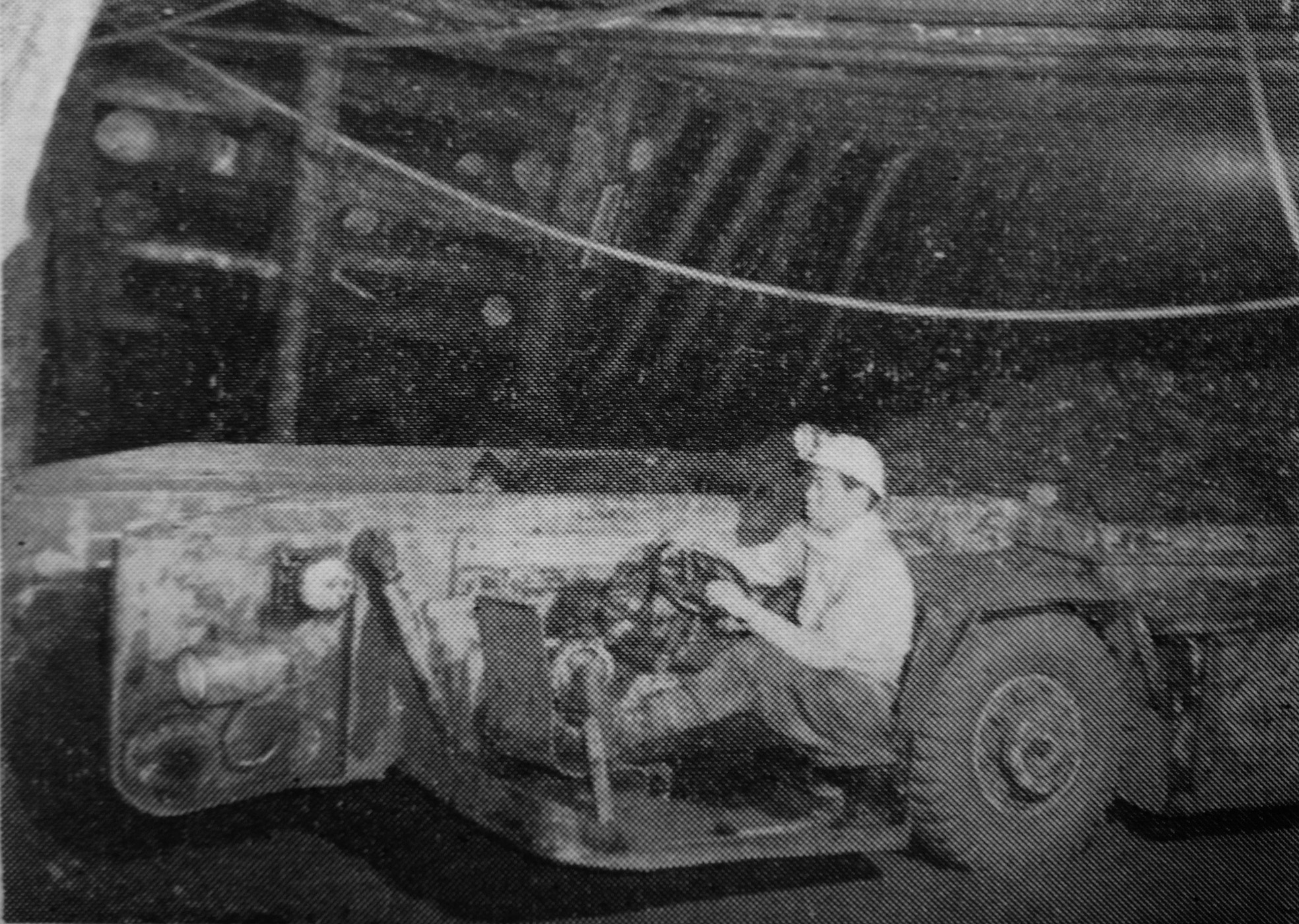 [それまでは] 切羽では石炭を戸樋の中で,片磐では木製炭車に石炭を入れて手押して出し,坑外ではエンドレスロープで積込場へ運搬し,選炭機ではジンガーが一台あって水洗をしていた。
