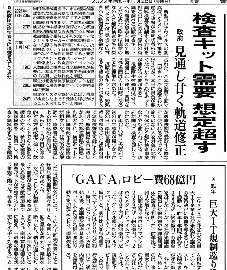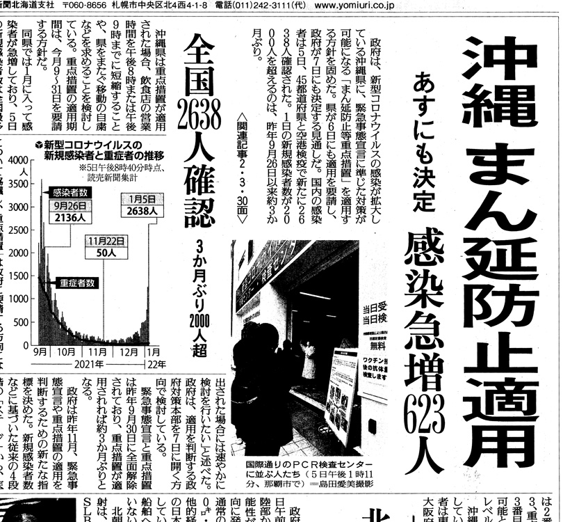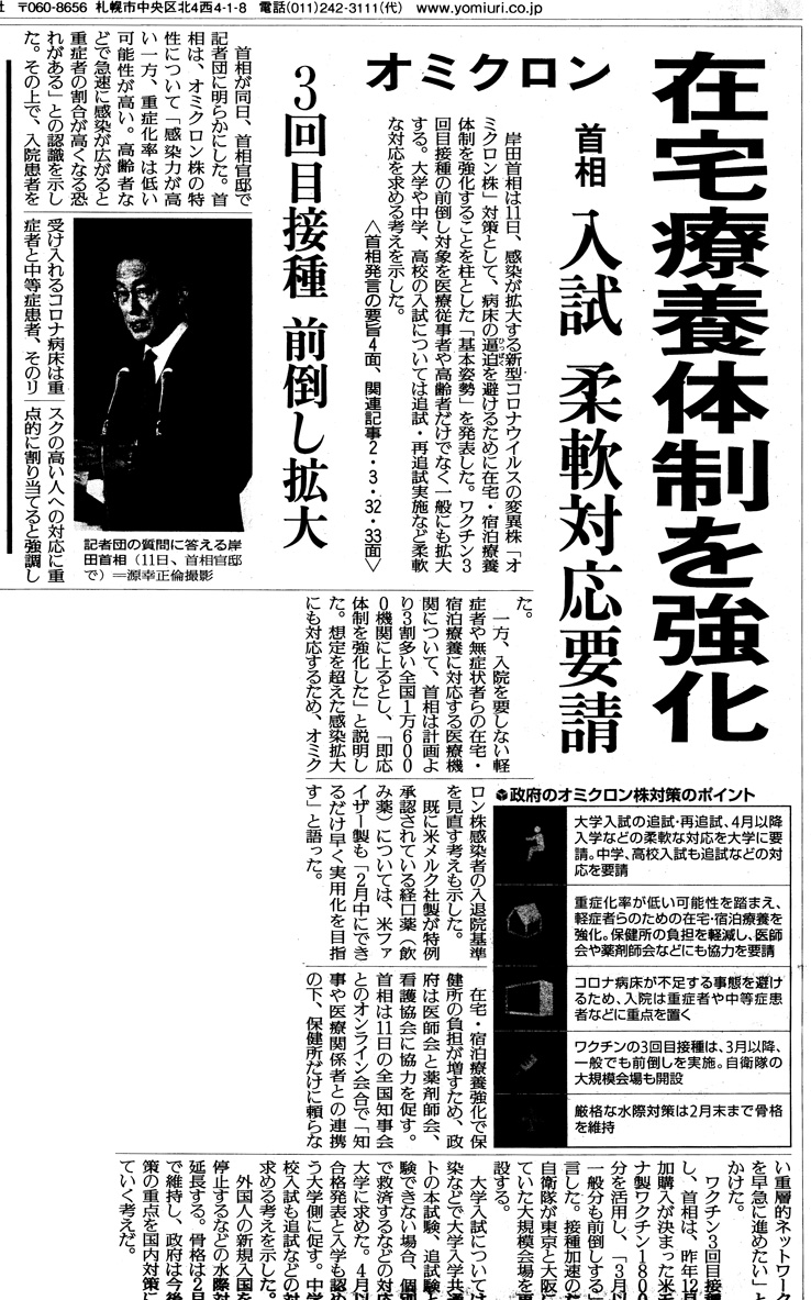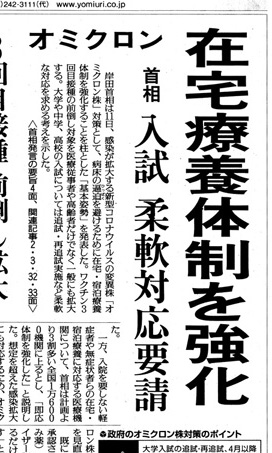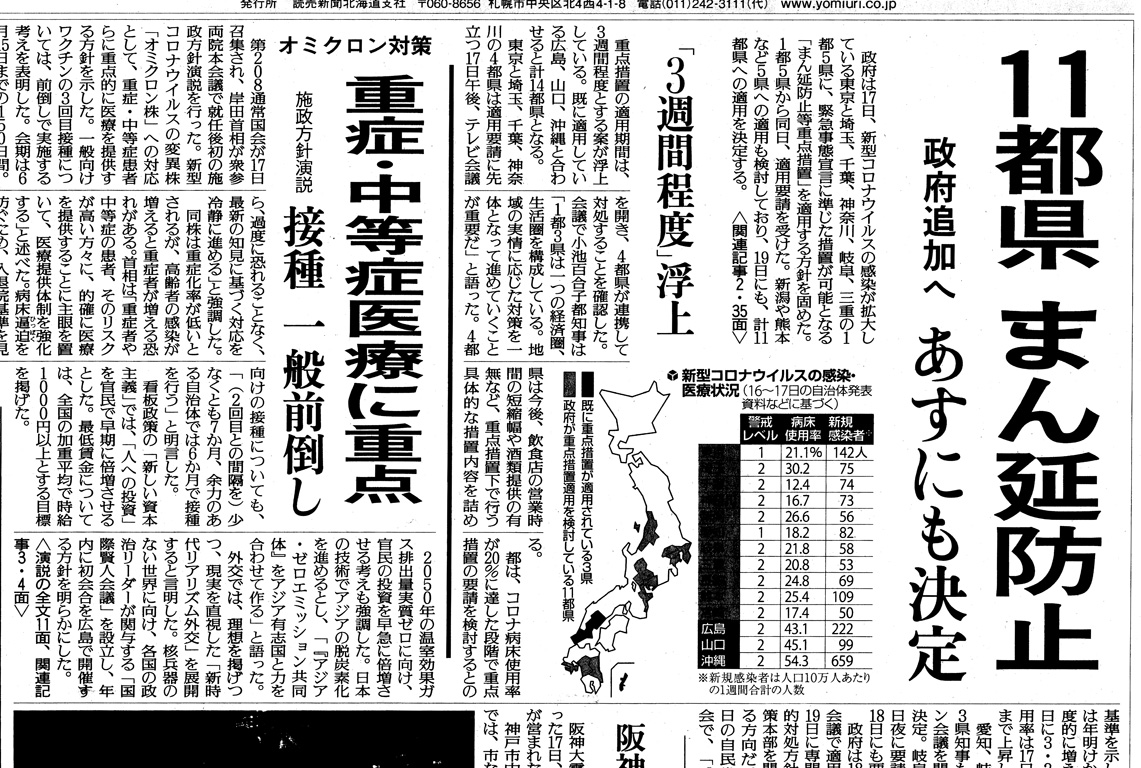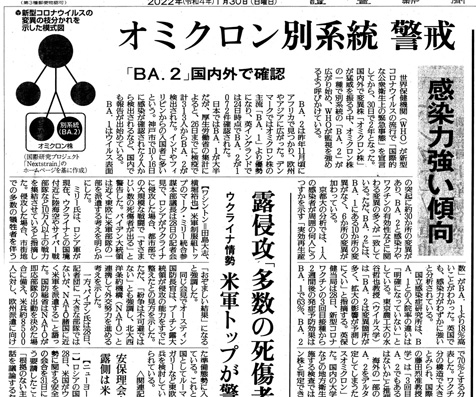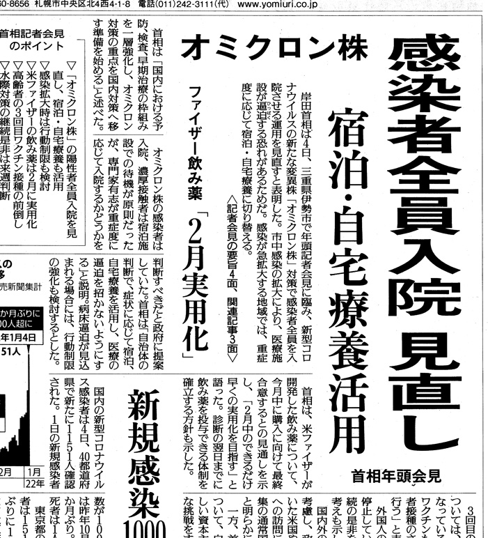 Up 定点観測「読売新聞のオミクロン株報道」: 2022年1月 作成: 2022-01-05