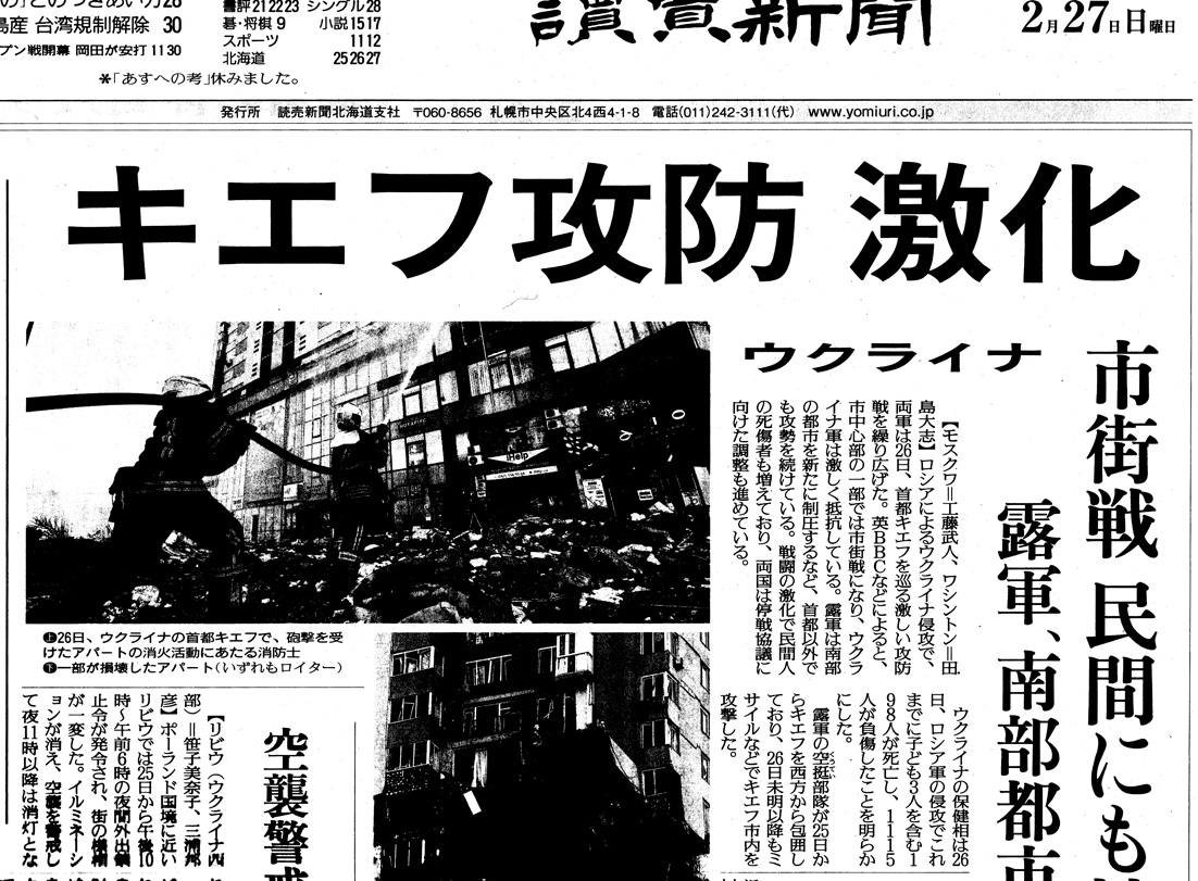 20〜27日は,「ロシア軍ウクライナ侵攻」も重なって,1, 2面の大見出し記事無し