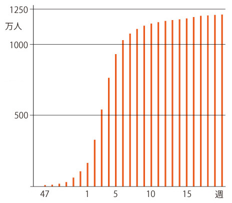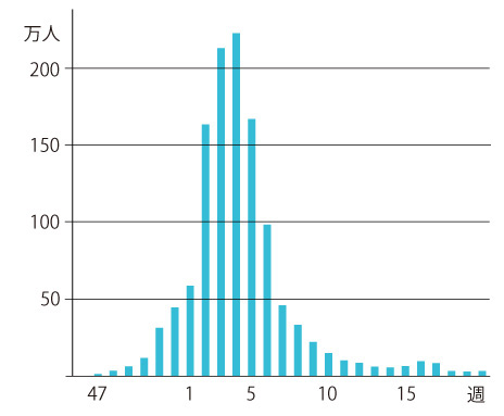 受診者数がピークの第4週は,この1週間で222.6万人が罹患者として受診している。