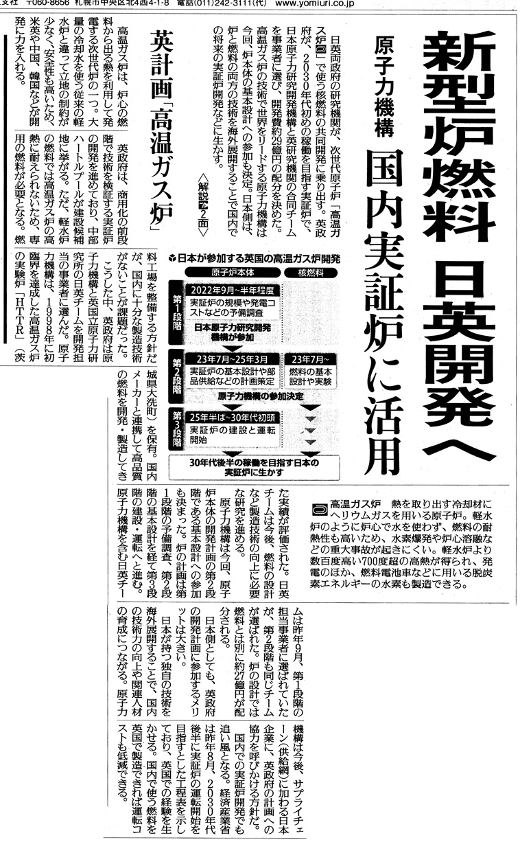 こうして原発は,脱炭素である上に,さらに安全であることになった。 原発に対する風向きが変わった。 原発は,善になる。 要点:化石燃料を悪にすることは,原発が善になること。 実際はどうなのか? 水がヘリウムに替わることは,<水が循環しない → メルトダウン事故>が,<ヘリウムが循環しない → メルトダウン事故>に替わるだけのことである。 「新型」に「安全」の含意は無い。 軽水炉は,安全ということになっていた。 事故を起こして,その「安全」は「安全神話」ということになった。 ひとは同じことを繰り返す。 「安全でなければならない,故にそれは安全である」──これがひとの論理なのである。 ひとは,「新型」には「安全」の含意があると思う。 |