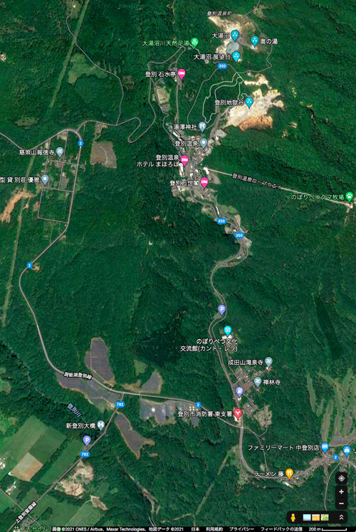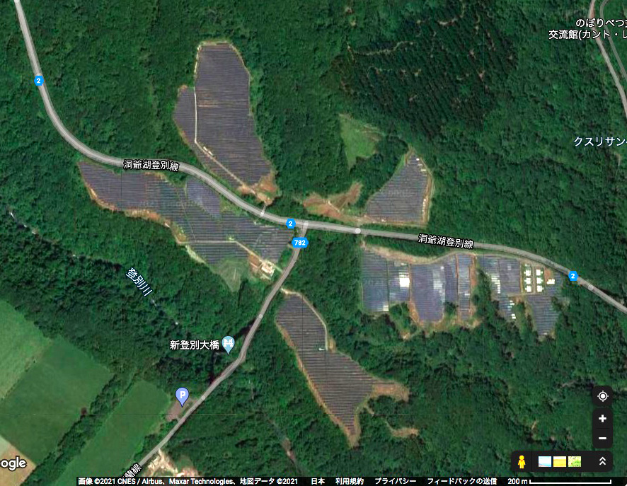 上の登別の例だと,太陽光パネル設置のために樹木を伐採しているその山は,火成岩の上に土壌が薄く積もっている山である。