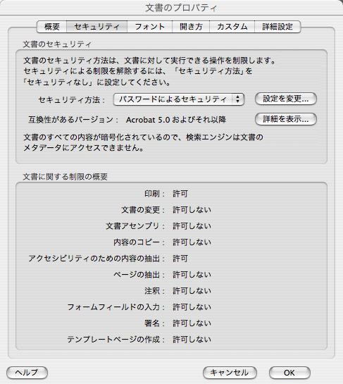 また,この PDF文書は,文書に対して実行できる操作をすべて禁止するセキュリティが設定されていて,特に Webサーバにアップロードして Web で閲覧できるようにするということができない──ここには「なんでもマル秘扱い」の兆候が窺える: