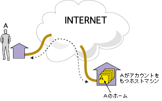 - ユーザとして登録されると,自分専用のディレクトリ(「ホーム」)が,あるホストマシンの中につくられます。