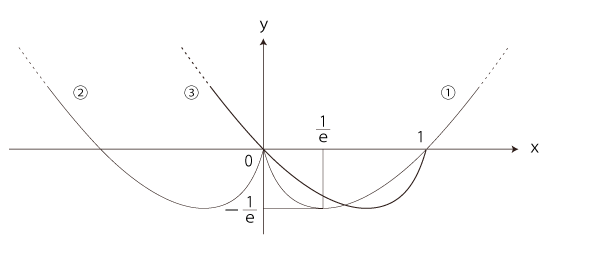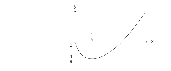 よって,y= (1ーx) log (1ーx) のグラフは,y=x log x のグラフを y軸で折返し,そしてx軸の正方向に1ずらしたもの: