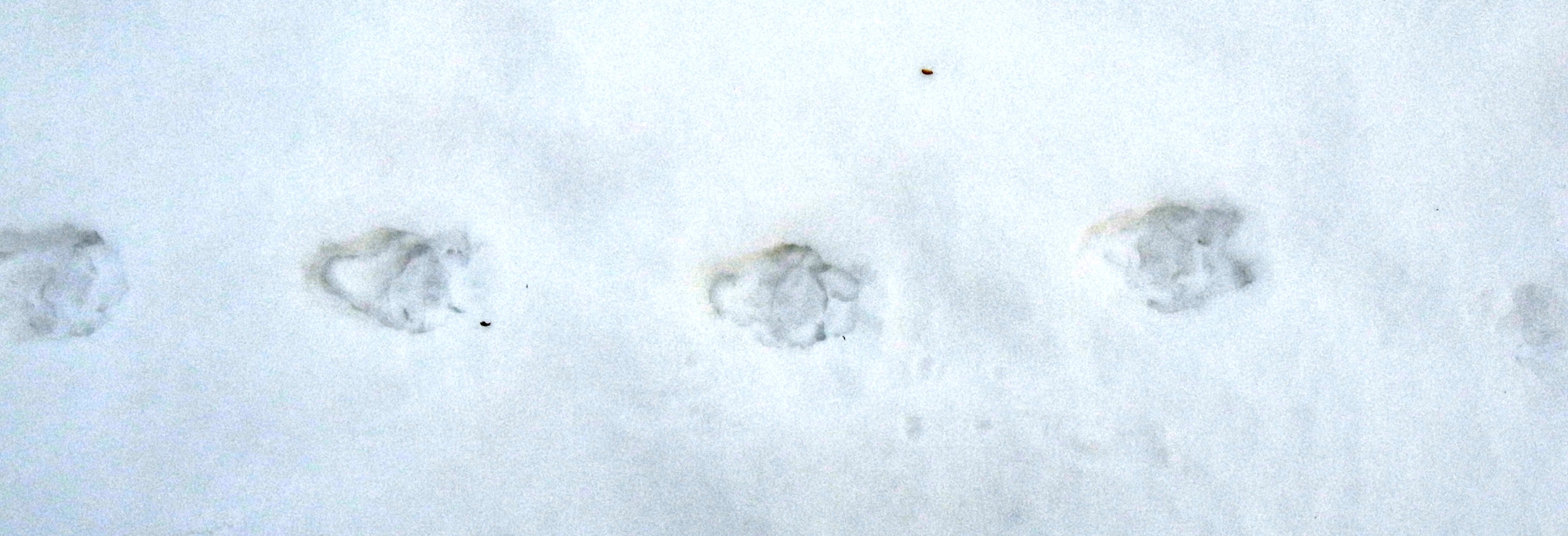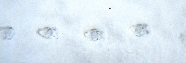 足跡が,等間隔でほぼ一直線上に並んでいる。 いったいどんな足の運び方をすると,こんな足跡になるのだろう? つぎは,斜里町役場公開提供の写真である: