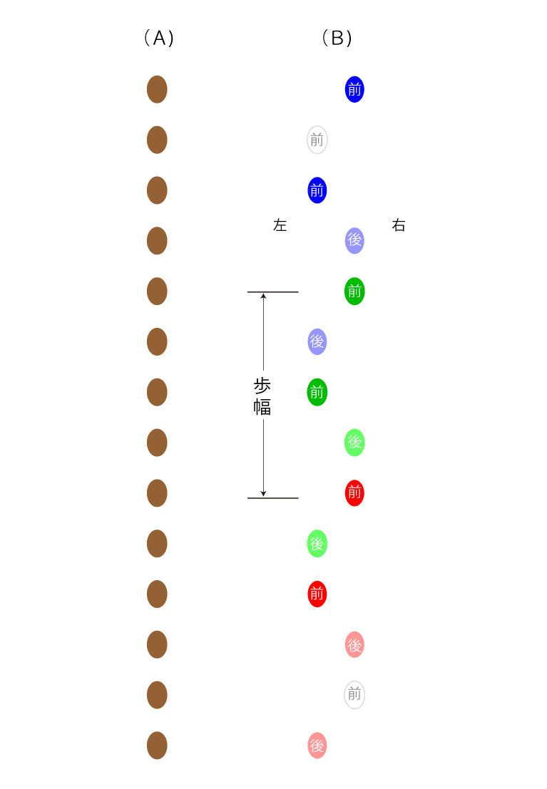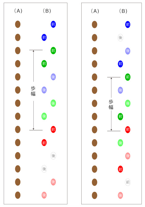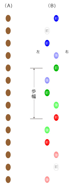 この場合だと,下図の足跡 (A) は,(B) であると推測される: