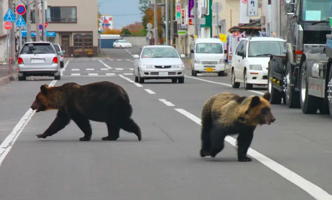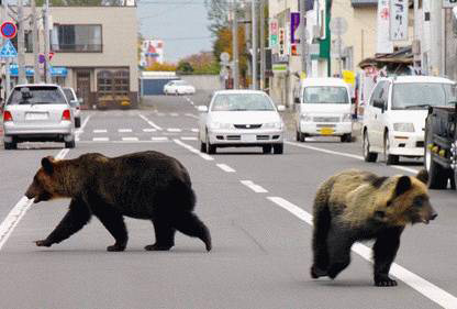 ヒグマの歩行の足運びは,はじめの分析通りでなければならない。 では,右・左・右・左のパターンは,どういうことになるのか? 「 |