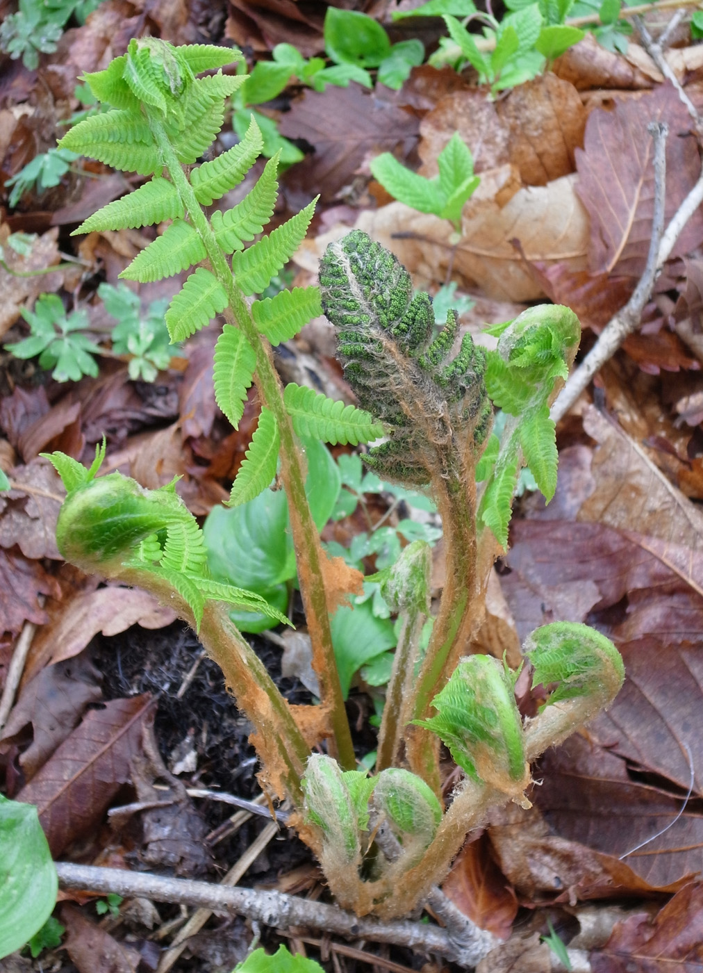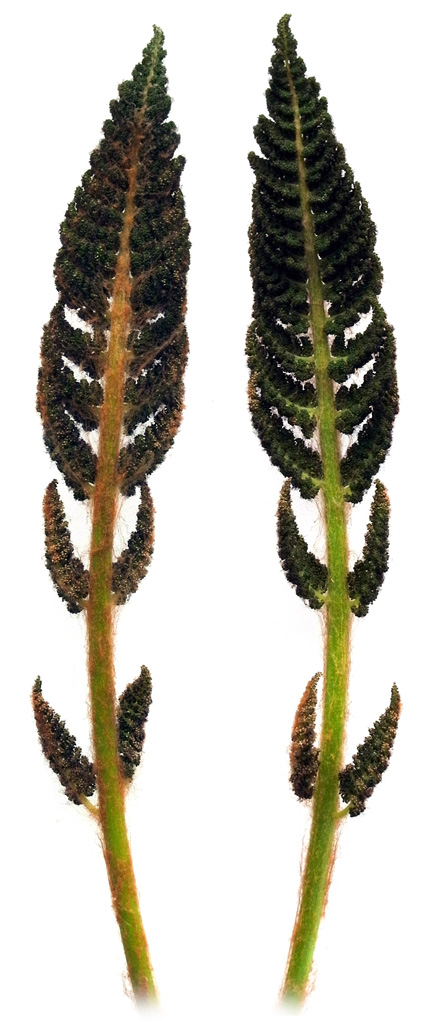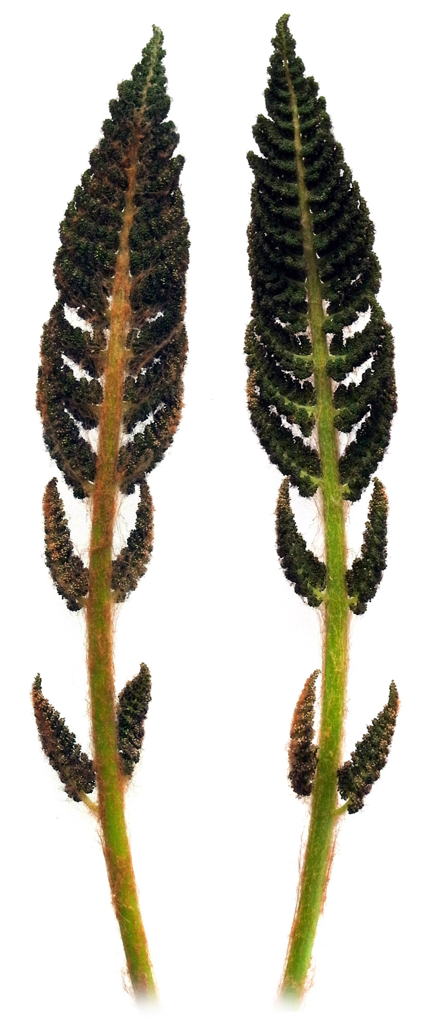 ヤマドリゼンマイは,一つの株に栄養葉(裸葉) と胞子葉(実葉) をつける (「二形性」) タイプのシダ