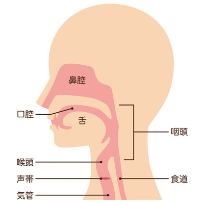 ここで「鼻・喉」は,つぎの図の鼻腔・咽頭・喉頭を謂う: