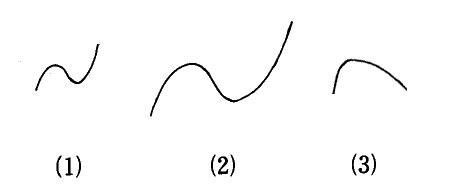 の三つの図に対して,(1) と (2) が同じ形に見えてしまい,(3) がこれとは違う形に見えてしまうというような