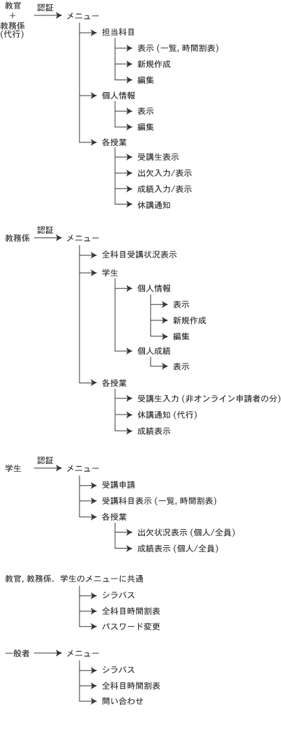 さてこのシステムは,構造上,教務システム(あるいはそれよりさらに大きなシステム)へと自ずと拡張される性格のものになる。実際: