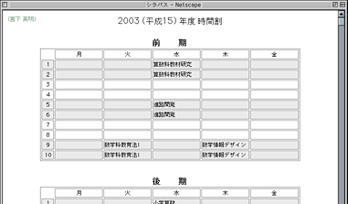 - シラバス,全科目時間割,教室使用時間割 (表示)