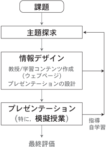 教員養成課程教科教育コースでの課題解決(仕事達成)型学習活動は,つぎのような流れになる: