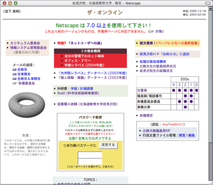 わたし自身は,現職場の岩見沢校において,2000年12月から教員ポータル (図1) を開始した。それのメニューの項目のうち,
