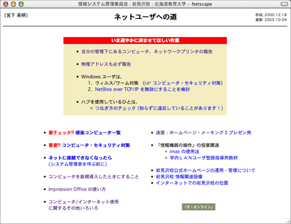 指導・教育タイプでは,「ネットワーク運用管理に対する教職員の自助・協力体制の構築」を「個人の情報能力の伸張」の面から進めるという意味で,情報関連のページを充実させている: