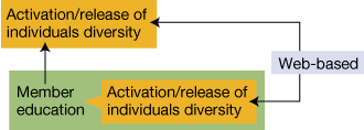 Conforming organization system and individuals diversity to each other includes member education. Here, the member education is of 'activation/release of individuals diversity', too. — 'Activation/release of individuals diversity' and 'web-based' are metastructured :