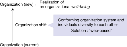 - Today', one of the most promising solution for conforming organization system and individuals diversity to each other with 'activation/release of individuals diversity' is the 'web-based' — we have the following organization design scheme :