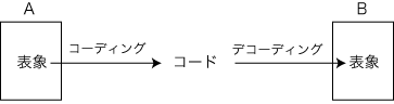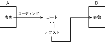 さて,このコミュニケーションのゴールは,Bにおける《Mの表象の生起》──《Mの認識》がこれに対応するものとして──である。しかし,この表象の生起はどのようにして可能か。上の図式において,Bに現前するテクストの表象化を"デコーディング"とはしなかったが,実際,このテクストをコードとするようなコーディングは,ここには存在していない。