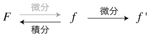 また,これの逆のこととして,f が傾きの変化の表現となるような関数 F を求めること (この操作の内容) を,「f を積分する」と言います。