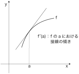 高校数学の「微積分」では,グラフの接線の傾きを求めることが「微分」である教えられる: