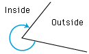 角に対する角度を一つ固定するとき,この角度を定める回転の軌跡が通る側をこの角の内側と呼び,もう一方を外側と呼ぶことにします。
