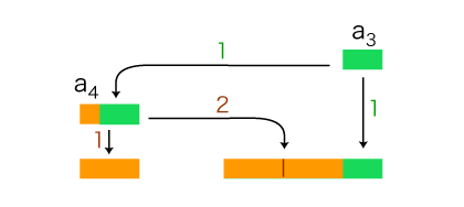 (3) a3 が a1 にいくつ入るか──1つ入って余り a4 がでる。