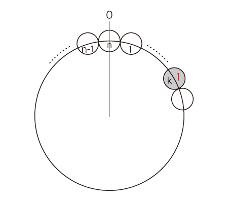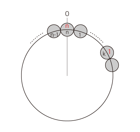 註1 : nより小さいiでi回目にOの位置にきたときは,(i+1)回目が1回目と重なる。