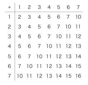 こうして,つぎの「足し算九九表」を得る:
