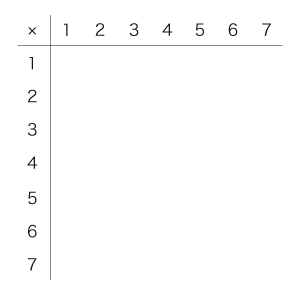 つぎに,積の計算 (「筆算」) ができるために,「かけ算九九表」を作成する。