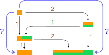 参考:ユークリッドの互除法 分数倍の値は,試行錯誤的に物を操作して求めるしかないように,一見思われます。しかしそうではありません。分数の値を求める手順があります。言い換えると,分数を値とするきちんとした測定法があります。 ──以下がそれです: この手順 ( 余り同士の互除を,余りがなくなるまで続ける) は,ユークリッドの互除法と呼ばれています。 ユークリッドの互除法を使うと,つぎの両方が同時に得られます: |