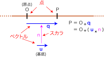 実際,1次元では,量と線型空間が同じものになったように,位とアフィン空間が同じものになります。