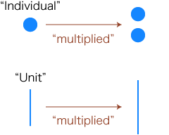 "Individual" and "unit" are expressions of the way you are conscious of the left-hand quantity :