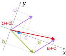また,<平面上方向自由な量>の和は,つぎのように決められました: