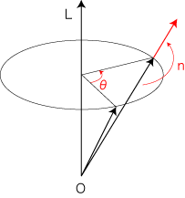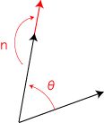 回転方向は,有向直線の向きと対面したときの左回り (時計の反対回り) を正と決めます。(言い換えると,回転して右ネジが進む方向と有向直線の向きが一致するときが,正。)