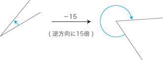 • このように考えた「回転の大きさ」は, 正逆2方向をもつ量になります。──特に,二つの回転の間の比 (倍) は「正負の数」で表現されます: