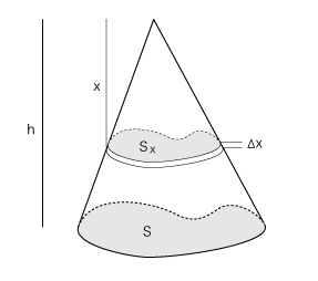 いま,底面積S,高さhの錐を考える: