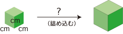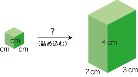 そして,単位 cm3 で体積を求めるとは,つぎの詰め込みを考えることです: