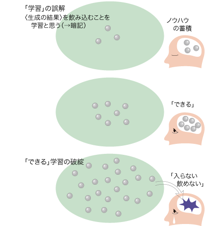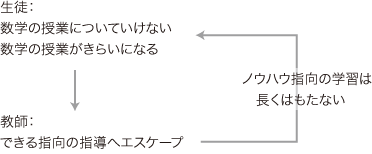 指導は「わかる (know-what)」指向であることが必要。 ──「できる (know-how)」指向の指導は,学習の破綻をまねく: ![]()