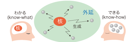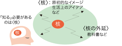 すなわち,「少しのことから限りなく多くのことを引き出せる」ような理解。 生成的理解を構成しているものは,(広い意味での) 理論の「核」と,核からその外延を展開する「推理」。 つまり,「理屈がわかっている」という言い回しで表現されるような理解が,生成的理解。 ![]()