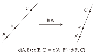 ここで「一直線上の距離の比が,保たれる」の意味は: