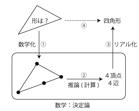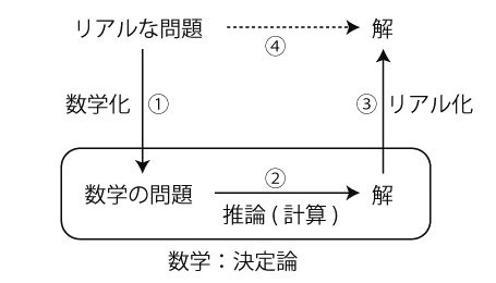 「数学的問題解決」の絵図は,「数学を決定論として使用」の絵図に他ならない: