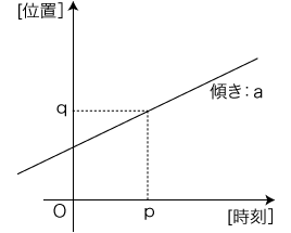 直線上の等速運動の「時刻と位置の対応グラフ」を作成せよ。