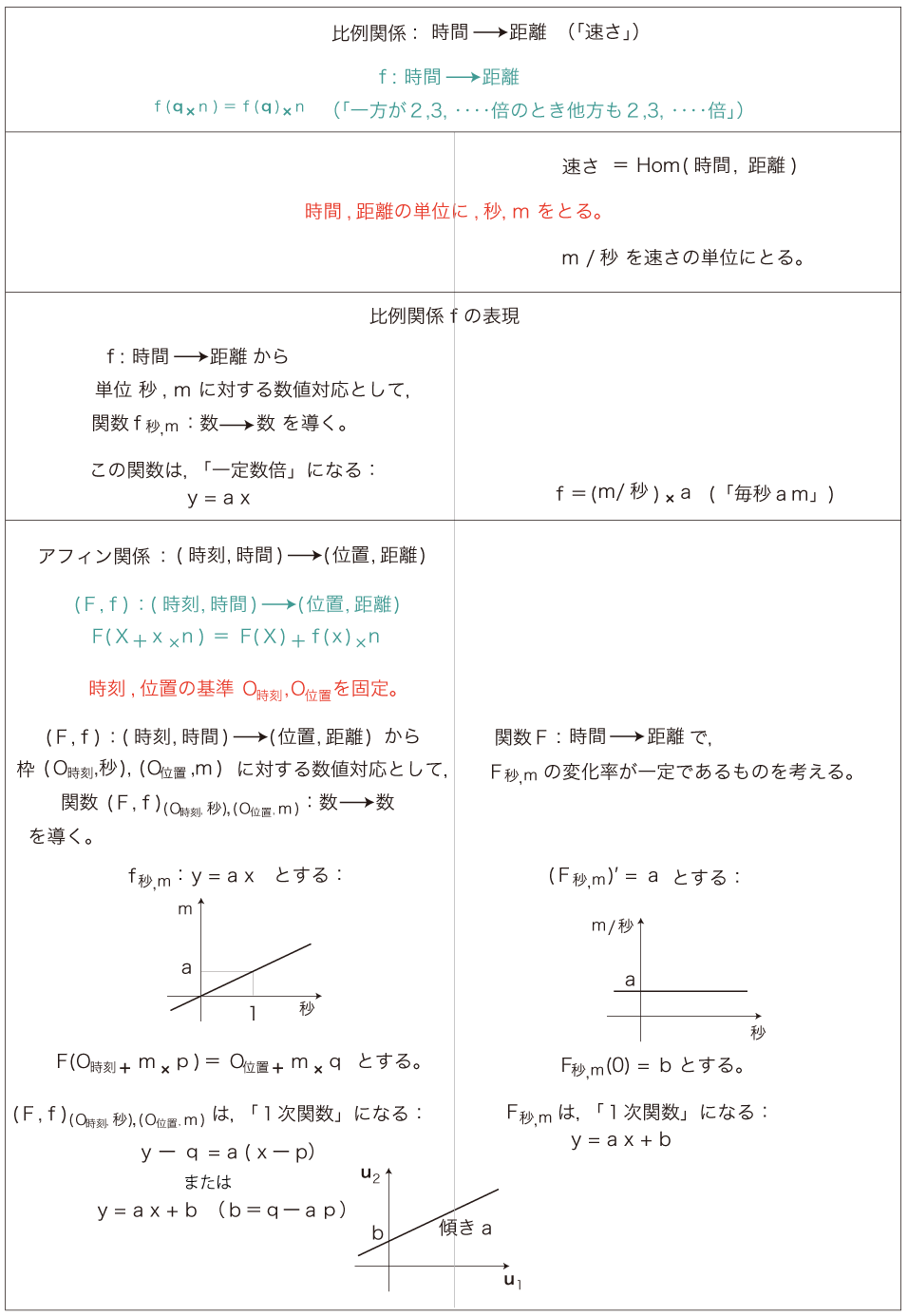 例:時刻と距離の比例関係 (「速さ」) から1次関数へ