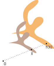 A の各点 X に対し,Oとf(X) の間の距離は Oと X の間の距離の r 倍。
