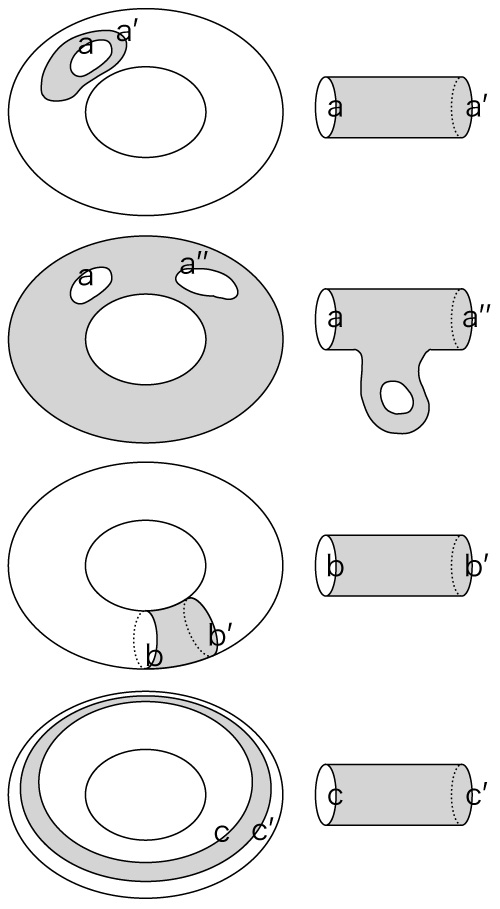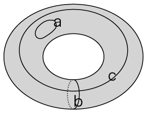 ここではトーラスのホモロジー加群の導出をやるわけであるが,以上の直観はホモロジー加群によって裏付けられることになる。