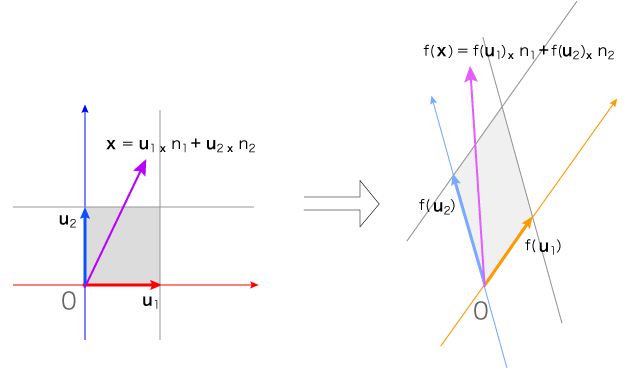 線型空間Eに対する関数f: E → F が線型写像であるとは,つぎの条件を満たすこと:
