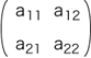 fが a11, a12, a21, a22 の4つの数で決まることがわかったので,「Eの基底 {1, 2} とFの基底 {1, 2} に対する線型写像fの表現」としてつぎの記号法を導入する (「行列」の登場!):