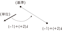 単位の (−1)+(+2)i 倍の有向線分を,つぎのように置く: