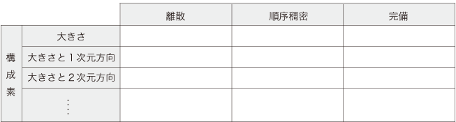 数学では,量をつぎのカテゴリー区分でそれぞれ対象化していることになります:
